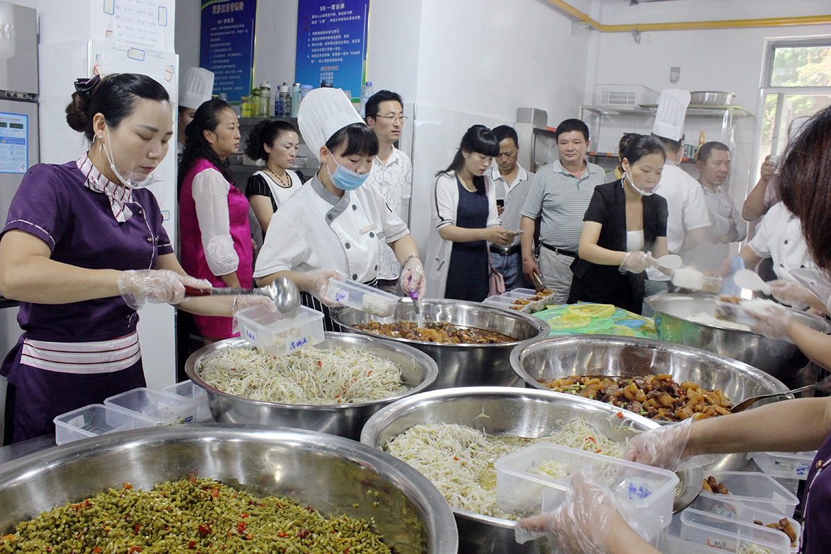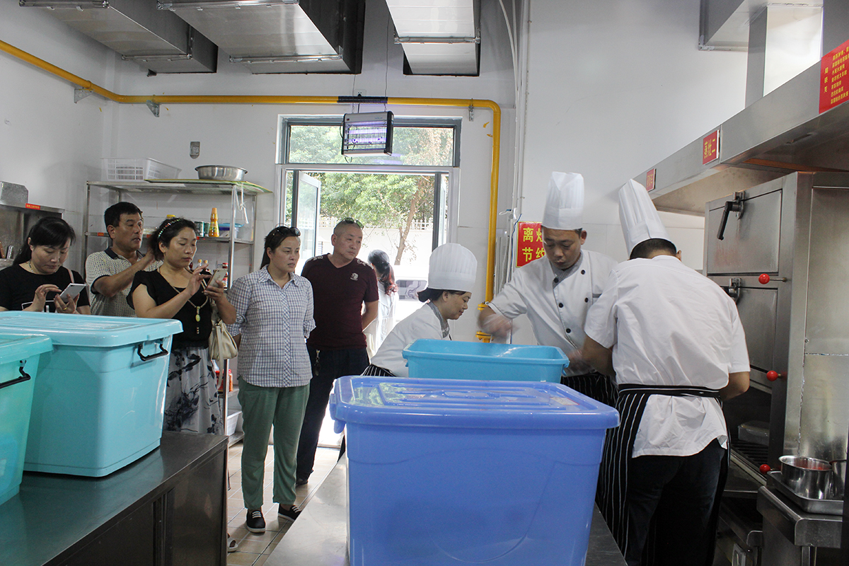 为了让职工吃的放心,吃的安心,9月8日,总公司邀请一线职工代表参观了公交食堂菜品、消毒设施等,让职工参与到对食堂食品卫生安全的监督。一是强化食堂环境卫生管理和卫生消毒制度,不断完善各项管理制度及操作流程。每天对餐饮操作间、库房卫生等进行彻底打扫,对厨具、餐具按时进行消毒。二是严把食品质量关。积极做好各种食品的保鲜保质工作,对采购的各种食品把好质量关,并严格按照公司规定做好每日菜品留样备查。三是不断更换饭菜花样,做到每日不同。还要求餐饮人员注意个人卫生,工作时穿戴整洁的工作衣、帽,做到规范上岗。