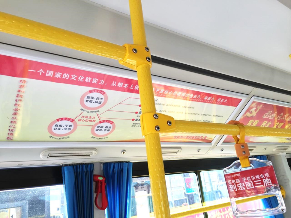 目前,我市公交车辆公益广告普及率达到100%。在公交各线路张贴创建文明城市宣传标语239台;张贴“创全国文明城市做六安模范市民”宣传标语294台;张贴图说社会主义核心价值观、讲文明树新风标语294台;张贴文字标牌294台和图解标牌59台;公交车车尾新增公益广告297台;车载播报文明用语及提示语294台。公益宣传单车覆盖比例达到30%以上,在线运营公交车身公益广告覆盖比例达到40%以上,公交车载电视滚动播放创建公益广告总时长达到30%以上。同时还清理了不规范车辆广告66台,清理并新增公交场站站台公益广告27块。