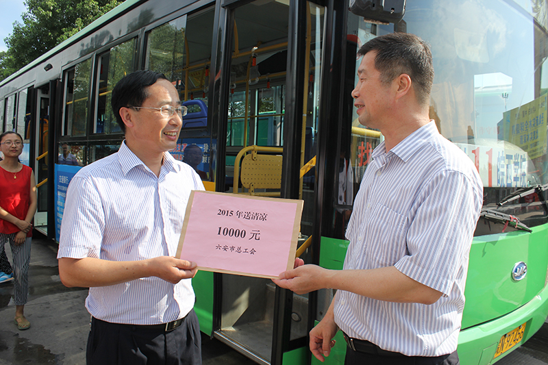 连日来,骄阳似火,热浪灼人,公交总公司的公交司机们依然冒着酷暑,坚守在公交客运第一线,为市民的出行提供优质的服务。2015年8月5日下午,市人大常委会副主任刘连生率总工会负责同志冒着高温酷暑,带着防暑降温物品和慰问金到南站公交换乘中心慰问公交员工。市交通运输局副局长韦勇陪同慰问。
