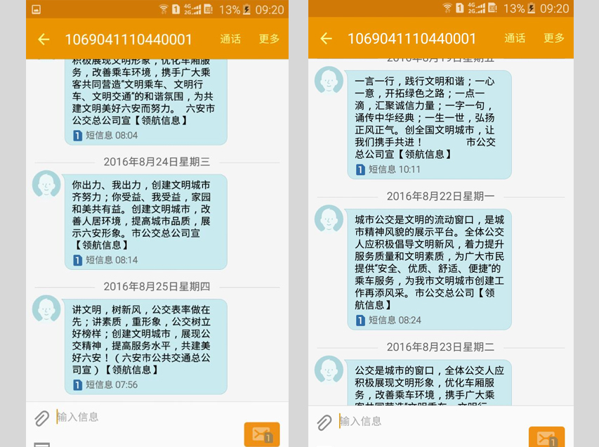 我司通过媒体宣传、介质宣传、活动宣传等多种形式,全面推进宣传工作。一是媒体宣传。在《皖西日报》开辟“文明公交、形象公交、满意公交”专栏,让社会了解公交;积极向各主要网站如中国文明网等和公司网站投递公交新闻稿件;在公司内刊《六安公交》每期刊登文明创建宣传稿,并发放给每个公交员工,让文明创建活动深入到每位职工心中。二是介质宣传。公交车是城市文明的窗口,充分利用公交车、公交场站这一宣传平台,强化舆论引导,营造创建氛围。三是活动宣传。公司全面推进“微笑服务、温馨交通”和星级服务等一系列创建活动,同时,还结合“三严三实”、“两学一做”学习教育,重点开展创建“美好六安公交”系列文明创建活动,以文明创建活动扩大文明宣传面。
