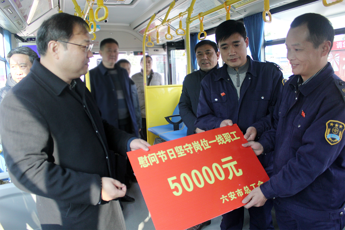 1月25日,市委常委、副市长束学龙在市政府副秘书长王友年、市总工会常务副主席李实、市交通运输局局长李卫东的陪同下,到客运西站公交换乘中心慰问公交一线职工,为他们送去慰问金并致以新春的问候。