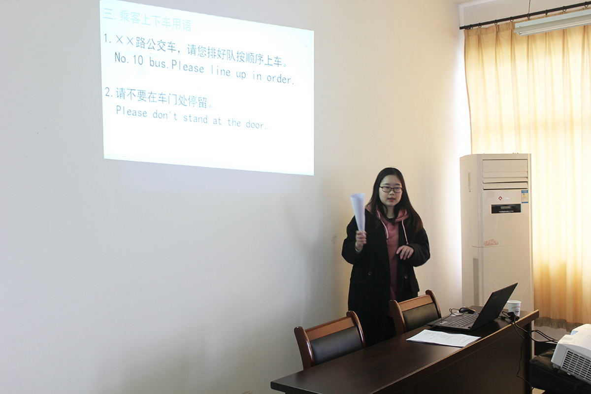 为内强素质、外树形象,提升公交员工的服务能力和服务水平,市公交总公司于2017年3月23日特聘请六安皋城教育的老师来司对业务素质过硬、工作业绩显著、服务考评优秀的员工进行英语口语培训。