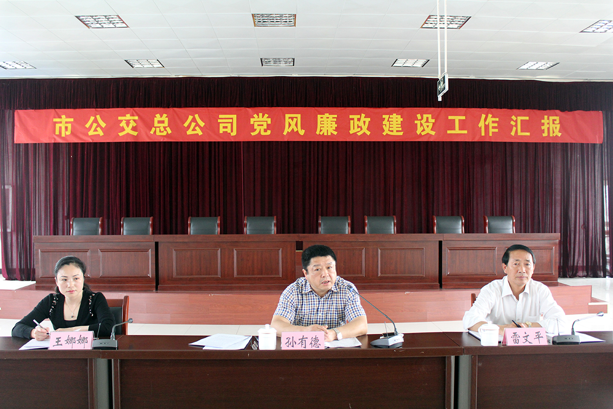 2017年4月19日,市纪委派驻市交通运输局纪检组组长孙有德一行调研市公交总公司党风廉政建设工作开展情况。
