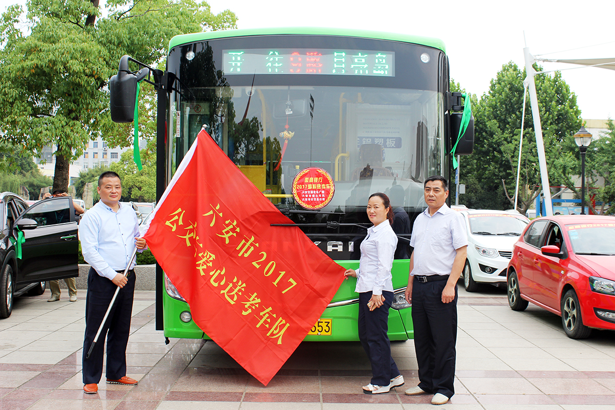 2017年高考即将来临,我市2017年“爱心送考”启动仪式于6月4日在中心广场隆重举行。今年,市公交总公司继续加入到“爱心送考”公益活动中,所有参加送考的公交车都悬挂爱心标志和绿丝带,为高考考生保驾护航。高考期间,在市区所有公交线路,高考考生凭准考证可免费乘车。