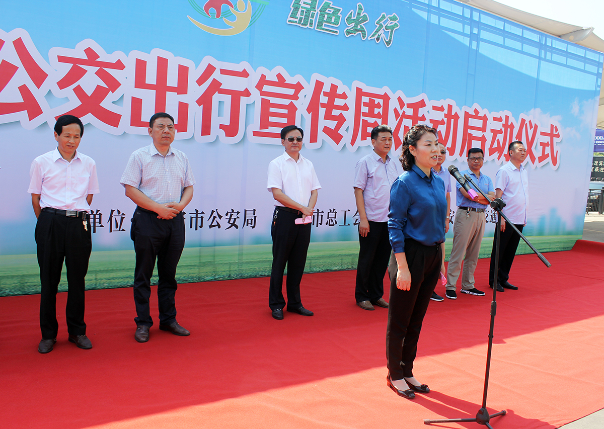 参加仪式的领导有六安市副市长余泳、市政府副秘书长张兴香、市交通运输局局长李卫东以及市总工会、市环保局、市交警支队、市运管处、市公交总公司领导等。仪式由张兴香主持。仪式上宣读了倡议书,市交通运输局局长李卫东发表讲话,他指出,公交出行宣传周活动对于关注低碳环保绿色出行,支持发展城市绿色交通,改善人居环境意义重大。李卫东回顾了六安公交在政府的重视支持下,各项工作稳步推进,尤其自2017年以来,大力推广应用新能源公交车,截止目前,新能源和清洁能源公交车增至286台,占比达到55%,深受广大市民的普遍好评。李卫东代表市交通运输局诚恳邀请社会各界朋友积极参与到“公交出行宣传周”活动中来,主动选择公共交通这一绿色、健康、经济、安全的交通方式出行。