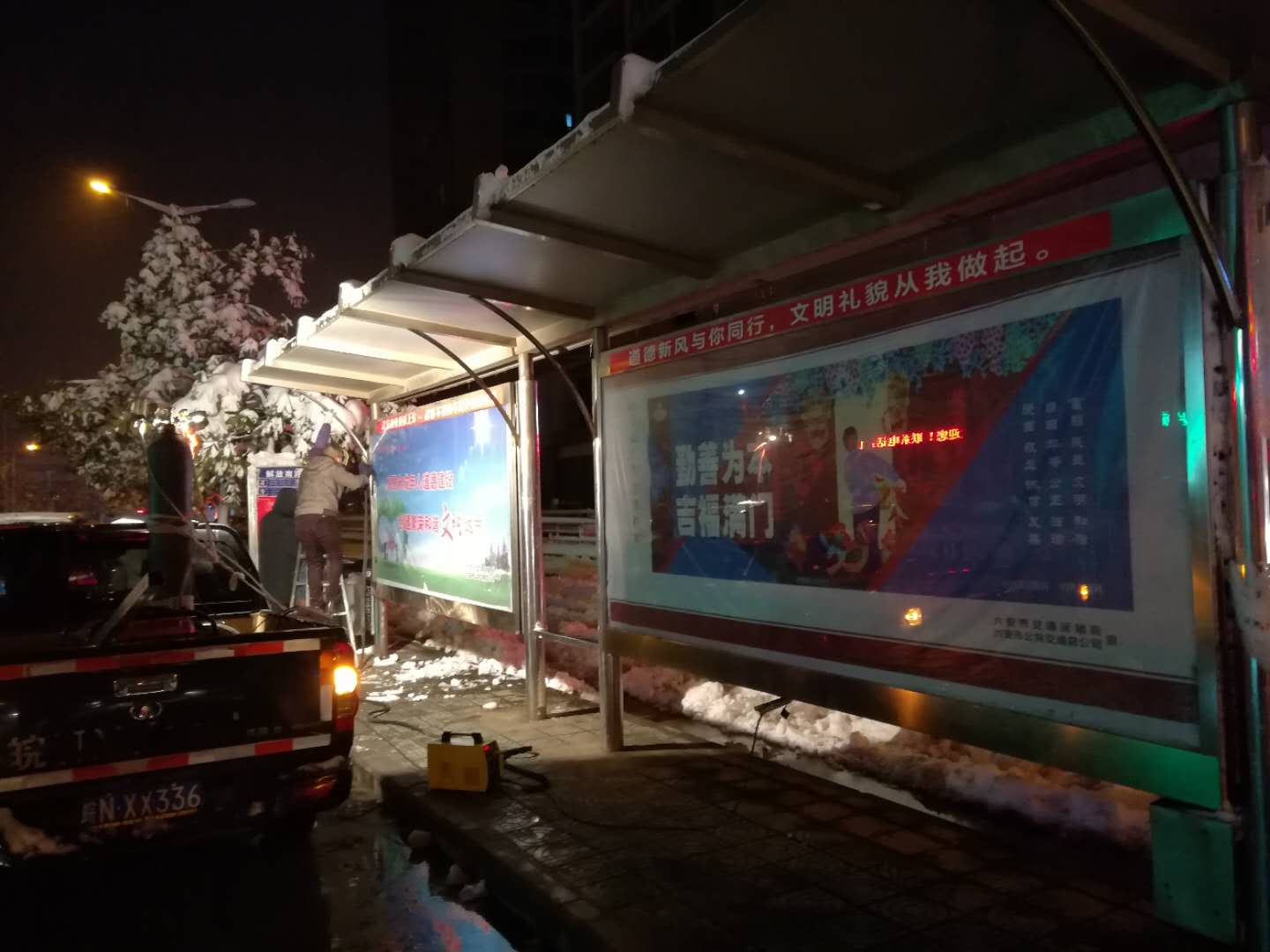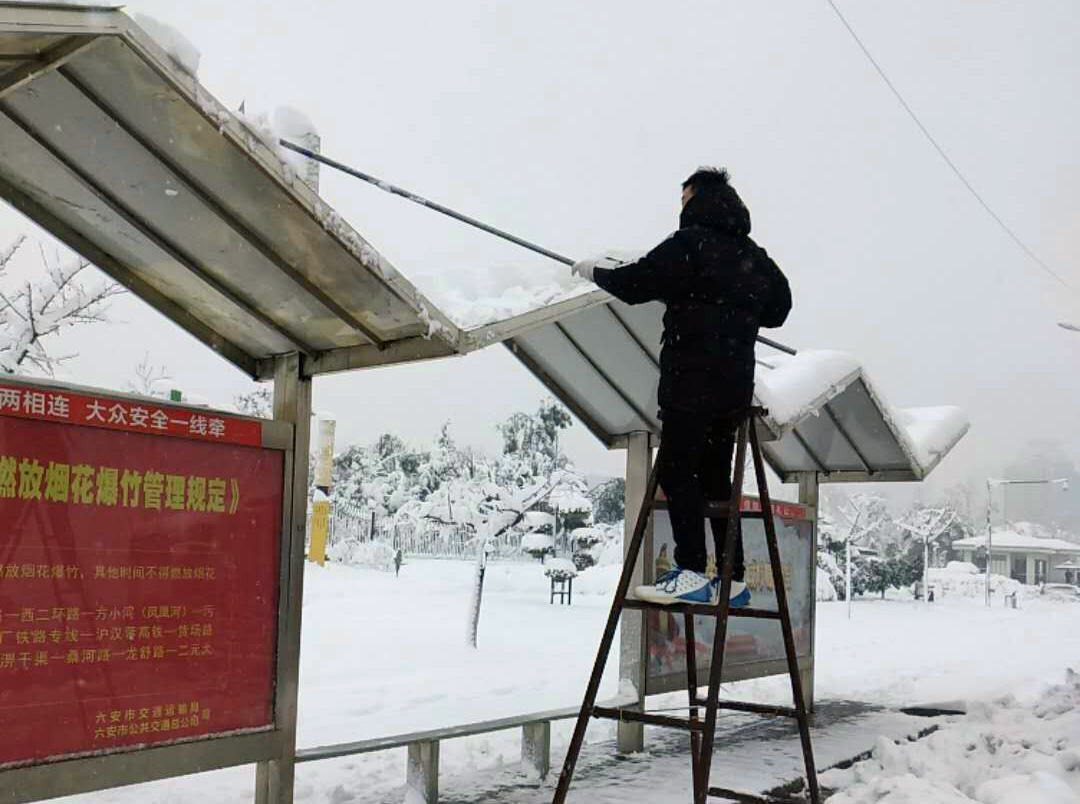 1月3日,六安普降大雪,为切实保障市民出行安全,4日起,我司组织人员对市区147座公交站台近400个候车亭逐一进行安全隐患排查及积雪清理,对龙河路上4个候车亭被积雪压塌的顶棚进行应急处理并张贴警示标语、拉禁戒线,提示市民注意安全。5日,工作人员冒着严寒,连续工作14小时,对龙河路上存在安全隐患的16座公交站亭进行重点加固处理。6日,公司组织专人对维修后的公交候车亭进行复查,确保彻底消除安全隐患。