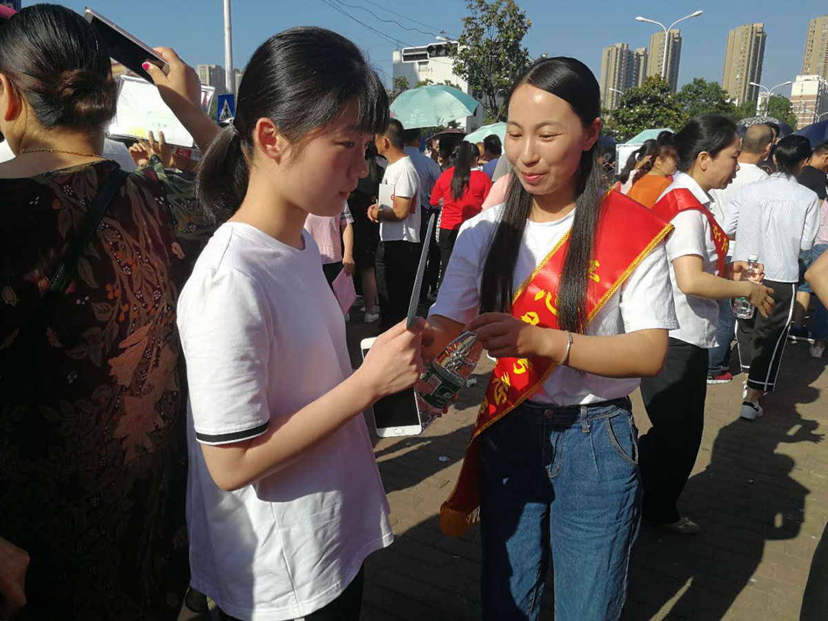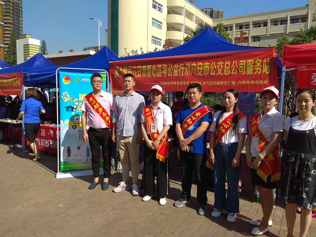 为大力弘扬“奉献、友爱、互助、进步”的志愿服务精神,积极营造“绿色、畅通、文明、和谐”的高考人文交通环境,高考期间,六安公交继续开展2018年度“爱心送考”公益活动。志愿者服务台准备有矿泉水、防暑药品和学习用品,一切为考生着想、一切为学子服务。志愿者们冒着炎热、坚守岗位、奉献爱心,热情为广大考生递送矿泉水、小扇子,并祝愿他们发挥出色、考出好成绩。一句温暖的话语、一束激励的目光、一丝灿烂的微笑,充满了浓浓的友爱和深深的情谊。
