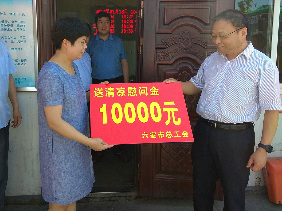盛夏酷暑,热浪炙人。7月18日上午,市委常委、副市长束学龙,市政府副秘书长钱大兴,市总工会副主席李实等领导在市运管局局长李教生、市公交总公司负责人的陪同下,冒着高温来到公交南站换乘中心,看望慰问坚守在高温一线的公交广大员工,给他们送上慰问金和防暑降温物品,送去了丝丝清凉和融融关怀。