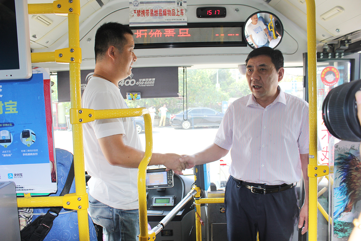 李局长一行听取了市公交总公司关于夏季公交运营、安全工作及公交支付宝“扫码”乘车等工作开展情况。随后,与驾驶员和场站工作人员亲切交流,关心询问他们的工作和生活情况,送上防暑慰问品,嘱咐他们一定要注意安全、保重身体。