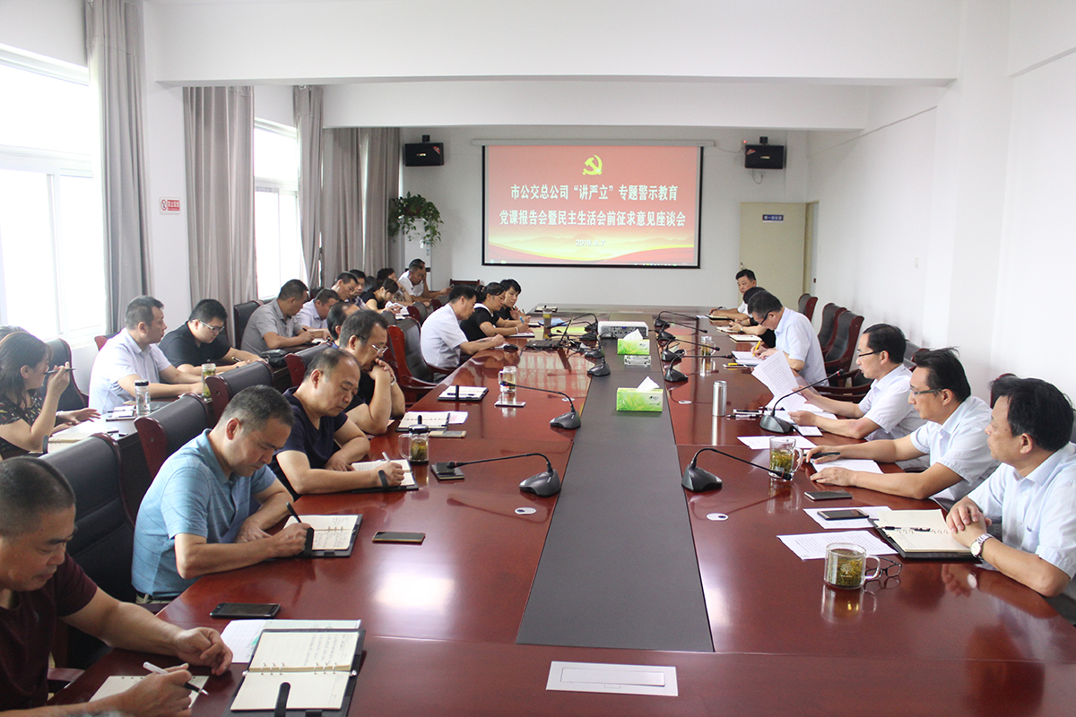 为扎实推进“讲忠诚、严纪律、立政德”专题警示教育,9月7日上午,市公交总公司召开“讲严立”专题警示教育党课报告会暨民主生活会前征求意见座谈会。公司党政班子、中层以上管理人员参加会议。