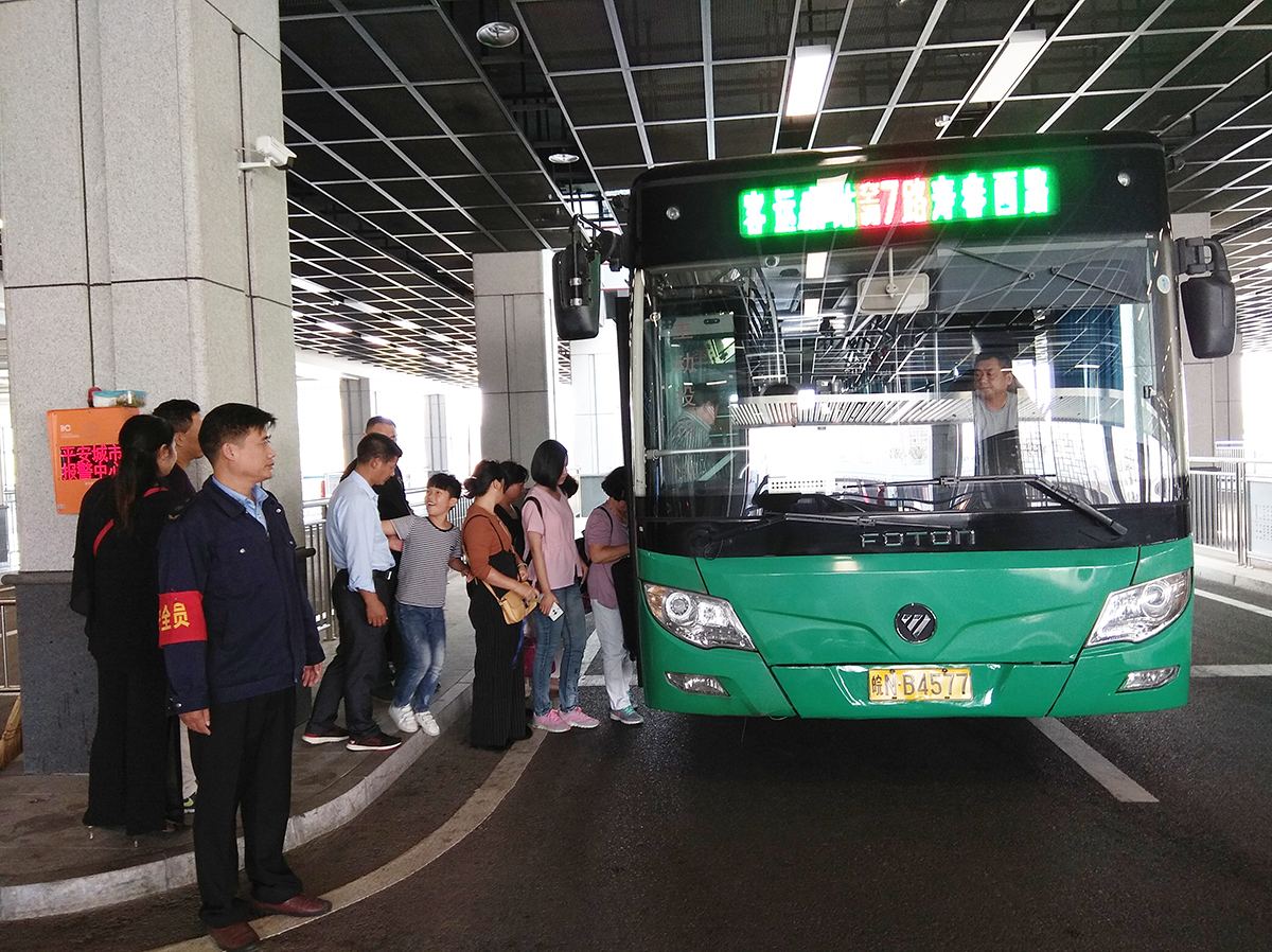 节日期间,身披火红绶带的公交志愿者们早早地就来到火车站和各公交换乘中心,做好客流引导,回答乘客咨询,提供暖心服务,维护现场秩序。志愿者们还耐心地向乘客介绍掌上公交和支付宝的使用方法。他们热心、细心、耐心的服务,受到乘客广泛好评。