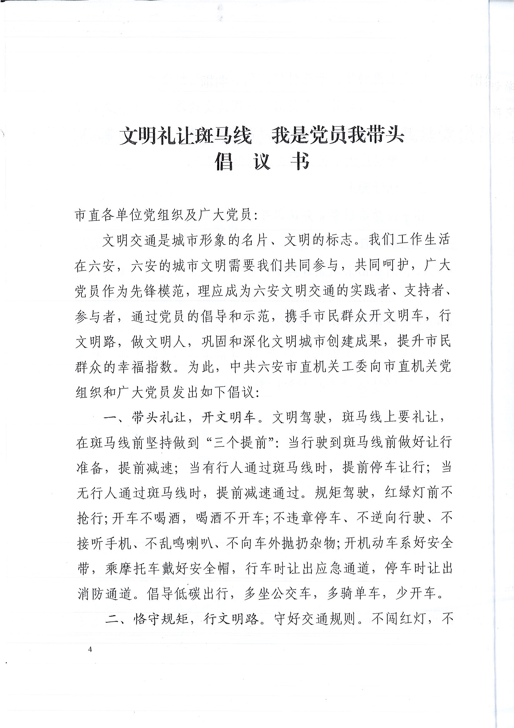 文明礼让斑马线 我是党员我带头倡议书 -凯发官网首页