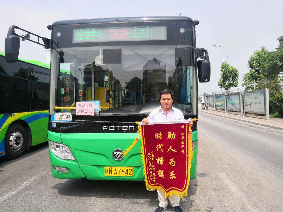 6月12日,乘客赵老先生向六安市公交总公司送来锦旗和感谢信,对18路公交车(皖na7642)驾驶员陈景堂危急时刻伸援手,救人于危难之间的高尚行为表示感谢。