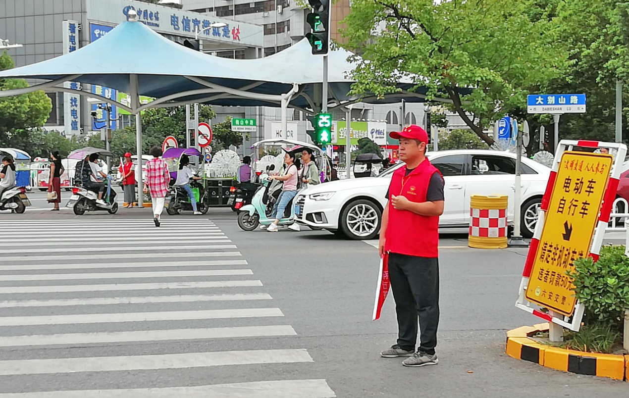 公交志愿者每天准时到岗并身穿志愿者马甲、头戴志愿者帽子、手持红色小旗,在大别山路与梅山路交叉路口协助交警进行“礼让斑马线”文明劝导,维持路口秩序,引导广大市民自觉遵守交通规则,养成文明出行的好习惯。