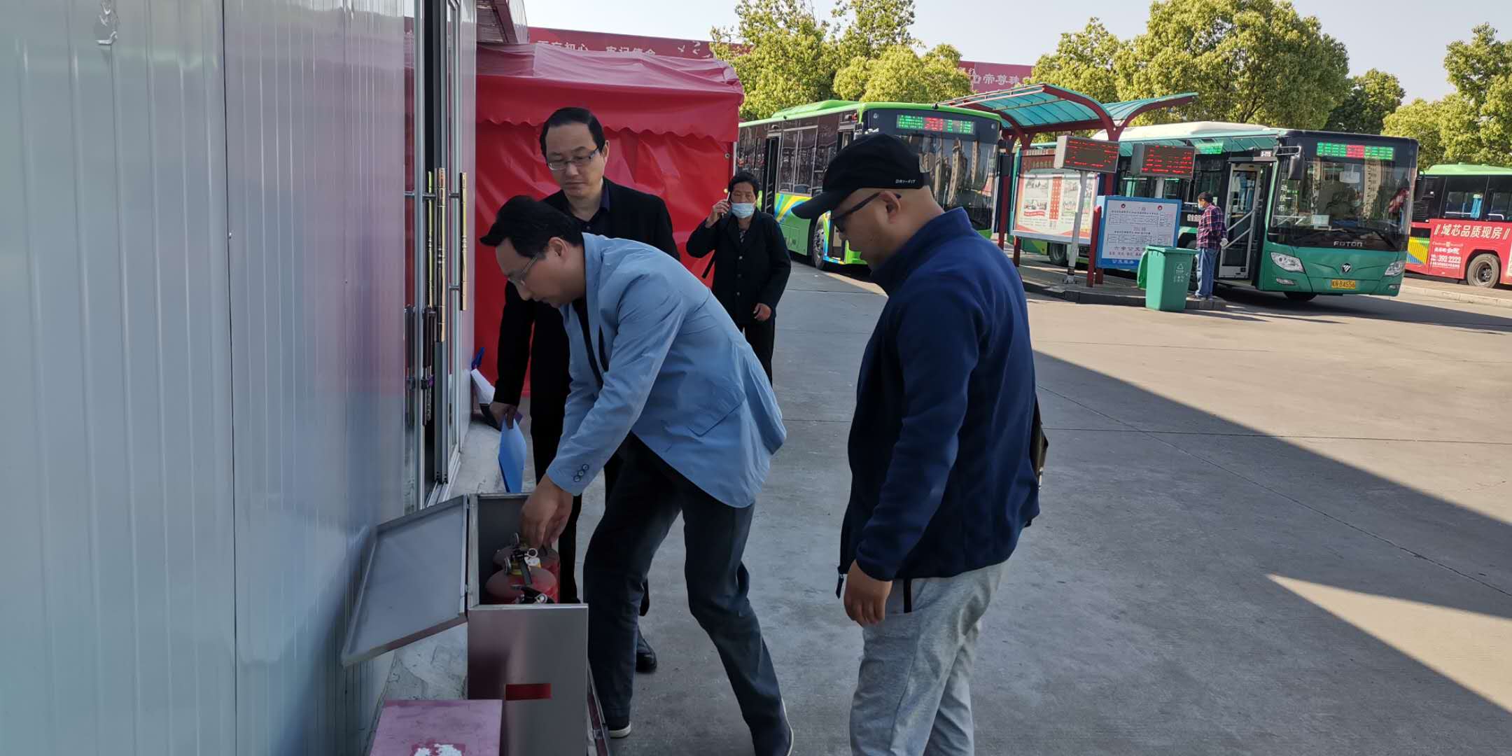 检查组深入到办公场所、车间、场站等重要场所,对疫情防控和安全防范措施的落实、消防器材、用电设备、安全设施、场所卫生、维修人员安全操作等方面进行安全生产检查,并现场随机抽取公交车辆,查看灭火器是否完好、消防锤是否配置到位,确保消防器材齐全有效。要求全体驾驶员对车载消防设备进行全面自查,发现问题及时上报。在检查过程中,发现隐患和问题等不安全因素,检查组立即反馈给相关责任部门严格迅速进行整改,确保整改到位。检查组要求各部门要紧盯疫情防控工作不放松,坚持做好测温、消毒等工作,严格乘客乘车佩戴口罩和扫码举措,扎紧新冠疫情防护网。