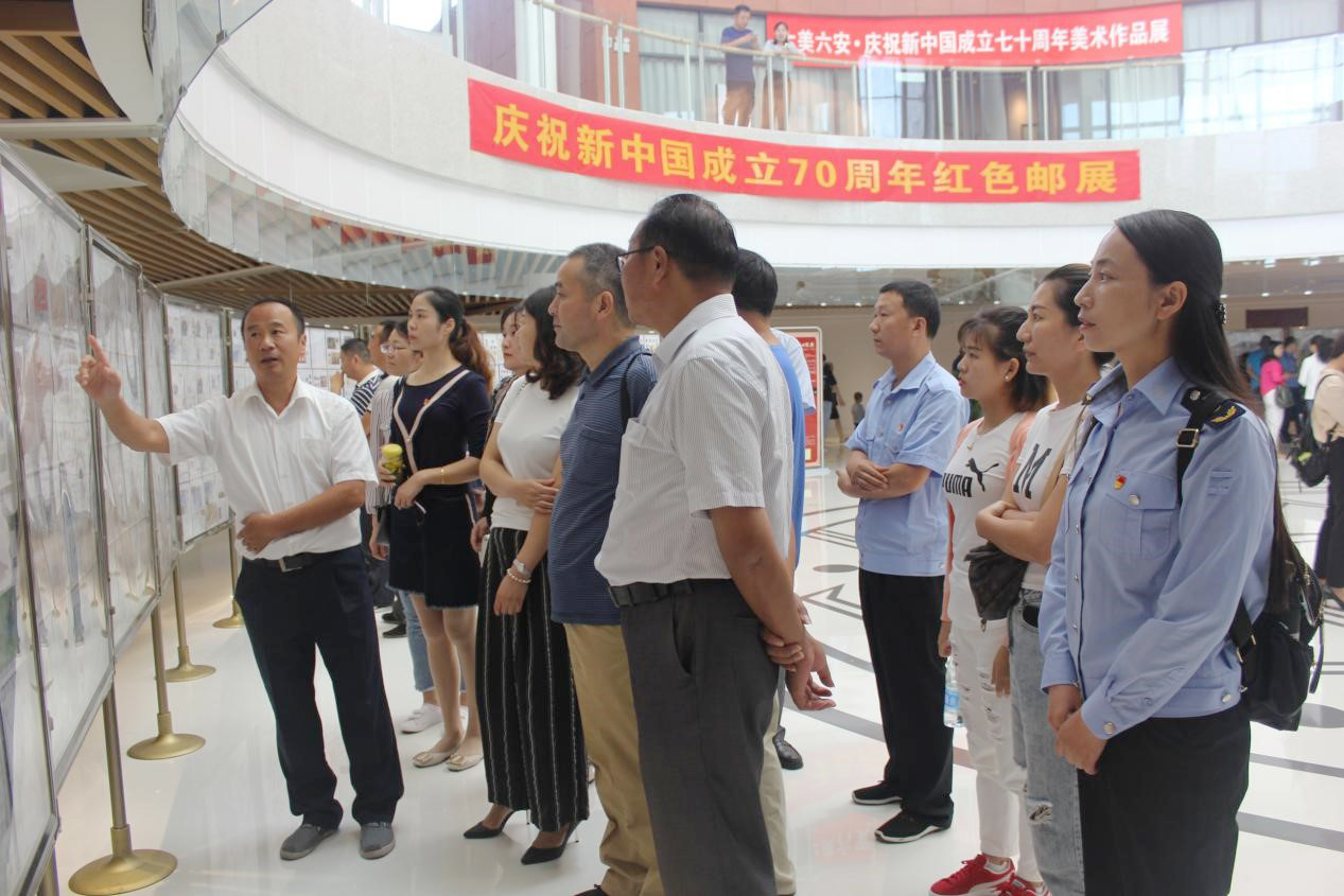 广大党员驻足于一幅幅邮票展板前仔细观看,认真聆听讲解员对共产党成立以来红色主题邮票和红色历史的详细讲述,感受新中国成立七十年来我市经济、社会等各领域建设发生的变化。