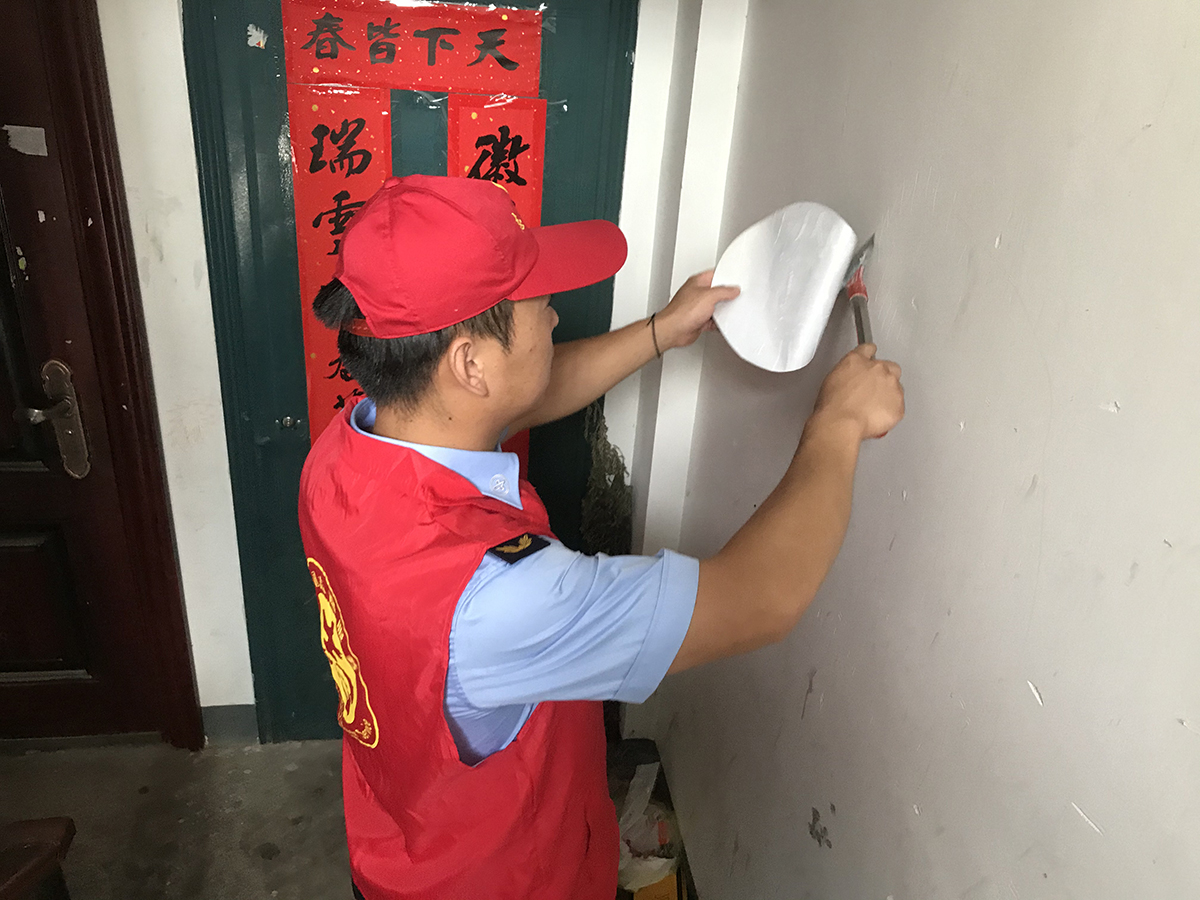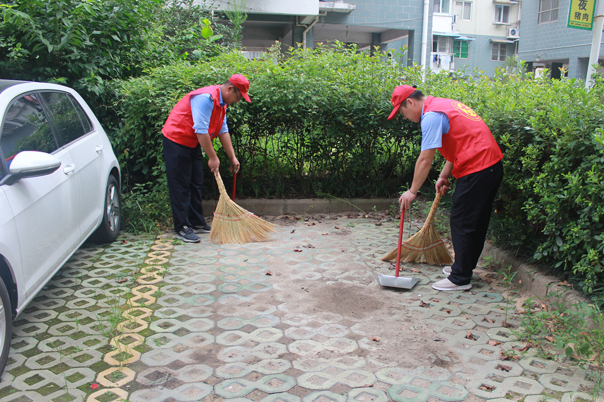 随后,志愿者们分组在小区开展环境卫生清扫及秩序维护。大家捡拾垃圾、清理绿化带杂草落叶,铲除及喷涂小广告,美化小区环境,并积极帮助引导居民把自行车、电瓶车等物品统一规整摆放,维护良好的小区秩序。