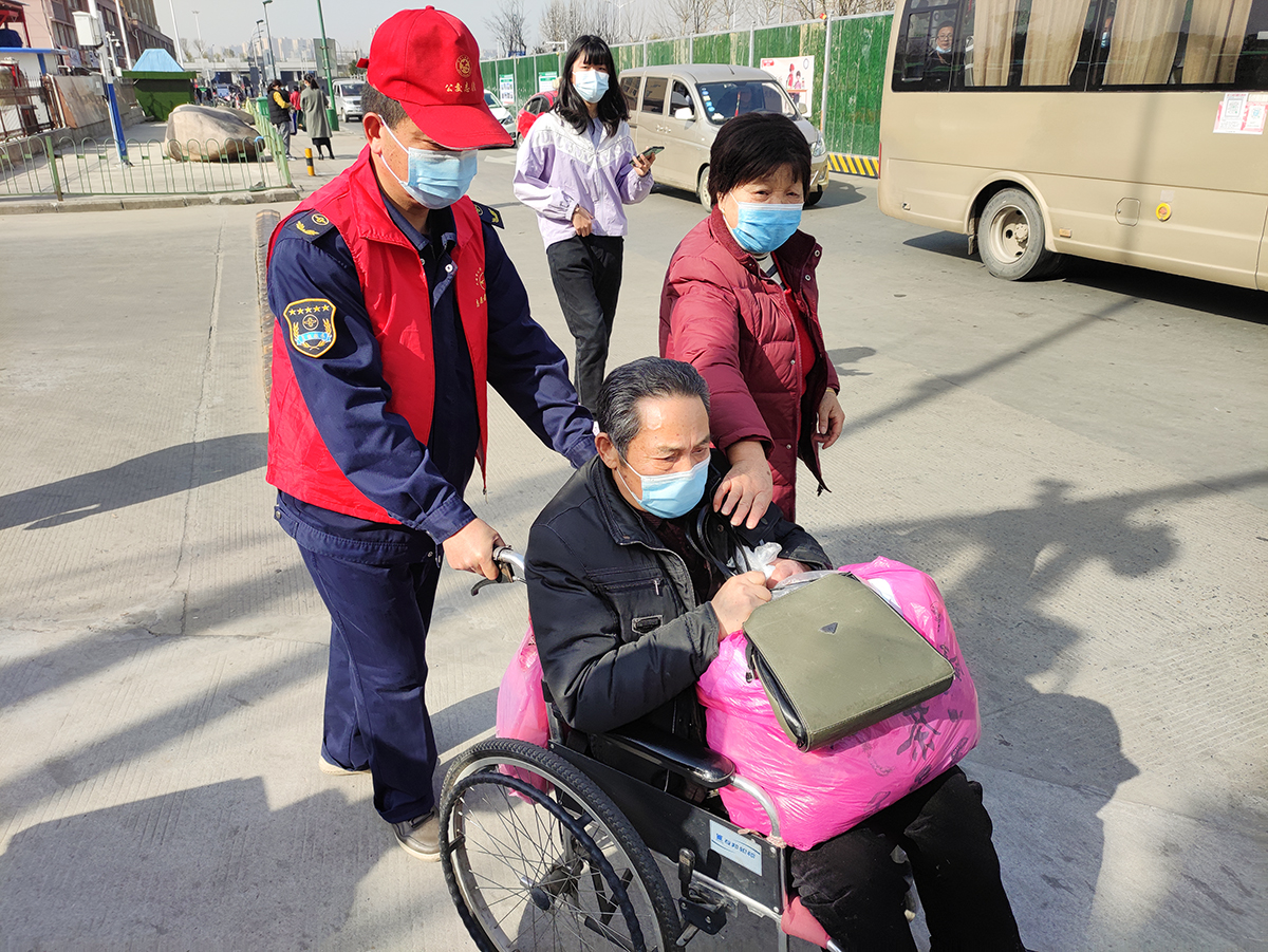 在公交南站换乘中心,行车二队的志愿者们身穿红马甲、头戴小红帽,手拿镊子、扫帚、抹布等工具,保持环境卫生整洁,扮靓站容站貌,提升窗口形象,努力为人民群众营造良好的乘车环境;同时,他们向行人和乘客分发乘车指南、防疫宣传材料和文明乘车、安全出行倡议书。他们扶老携幼,耐心回答乘客问询,倡导乘客文明有序乘车,引导市民遵守交通规则、做到文明出行;他们走进车厢向乘客宣传安全乘车注意事项和乘坐规则,指导扫码乘车,讲解掌上公交app的下载使用;他们面带微笑、充满热情,把尊老爱幼、热心助人体现在实际行动中,让公交服务更有温度。一声声“您好,您到哪去?您需要乘坐几路公交车?老人家您坐好”亲切悦耳、如沐春风,温馨周到的服务温暖了乘客回家的路。穿梭在公交站点的流动志愿红,成为一道靓丽的风景线。