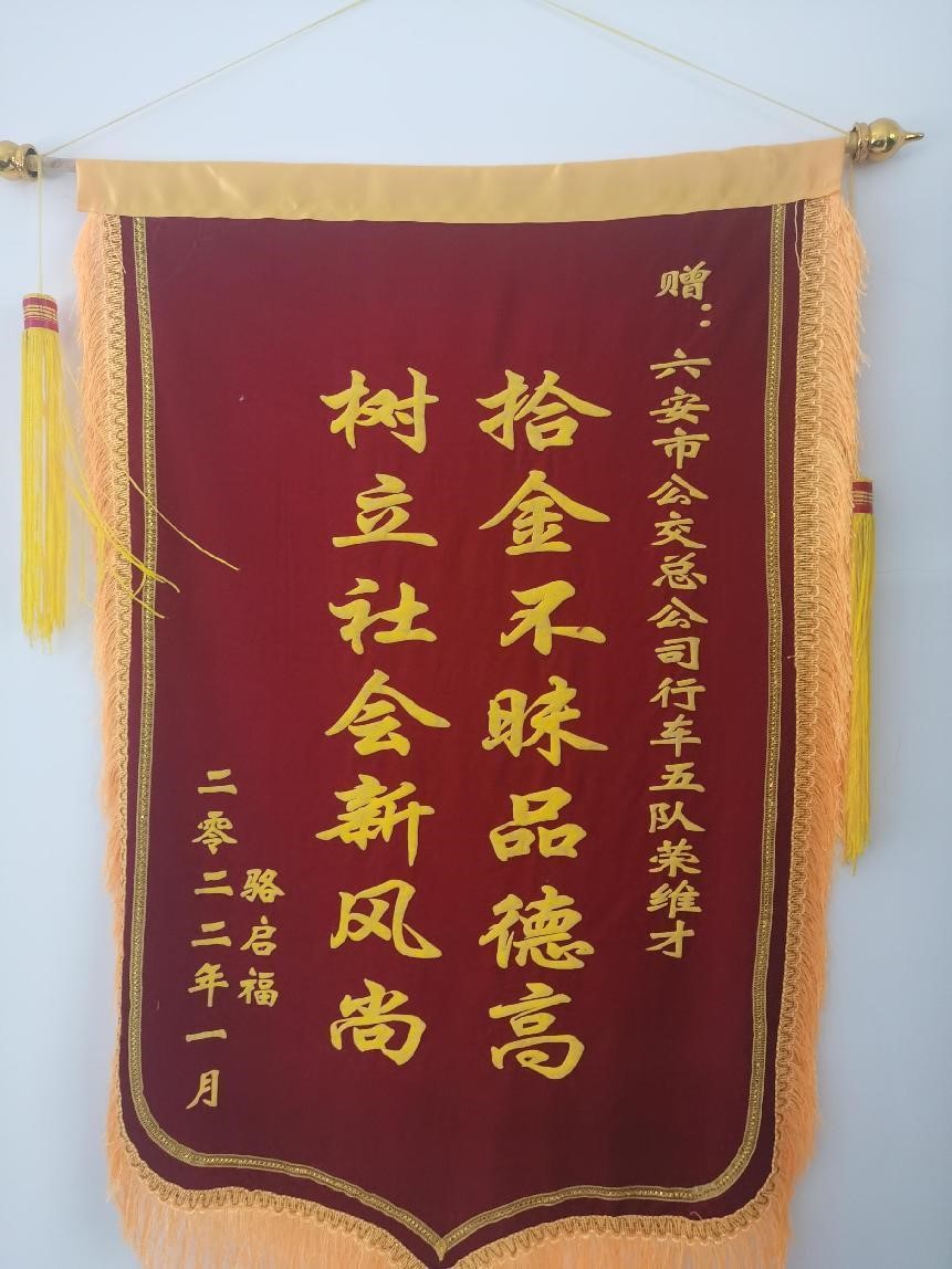 近期,一位老大爷在其家人的陪同下将一面印有“拾金不昧品德高、树立社会新风尚”的锦旗送到了市公交总公司。