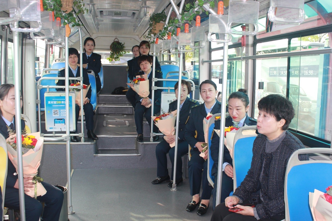 3月8日上午,市公交总公司党委委员、工会主席邬敏一行看望慰问奋战在公交一线的女职工,送上节日礼品和祝福,并与7路全国“巾帼文明岗”的女职工代表们亲切座谈。