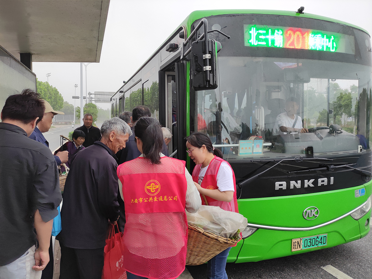 为确保菜农安全顺畅出行,六安公交安排志愿者在公交站点开展志愿服务,用心用情用力做好服务保障。令人称道的是,助农公交线的全体驾驶员积极为广大菜农提供贴心周到的出行服务,做到等一等、带一带、帮一帮,服务热情,耐心细致,不厌其烦,菜农们个个竖起大拇指。