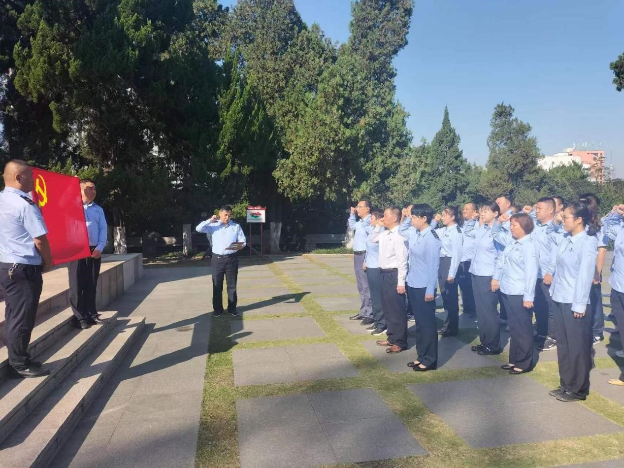 在烈士陵园纪念碑前,全体党员整齐列队,面向鲜红的党旗,重温入党誓词,在铮铮誓言中表达不忘入党初心、践行使命担当的坚定信念和决心。此次活动,既是一次红色主题教育,又是一次思想淬炼和精神洗礼,大家纷纷表示,要牢记革命先烈的遗志,以先烈为榜样,从他们身上汲取力量,牢记党旗下的誓言,将先烈们不畏艰苦、无私奉献的精神贯穿到部门各项工作中,在新时代赓续共产党人的精神血脉,永葆共产党员的政治本色。