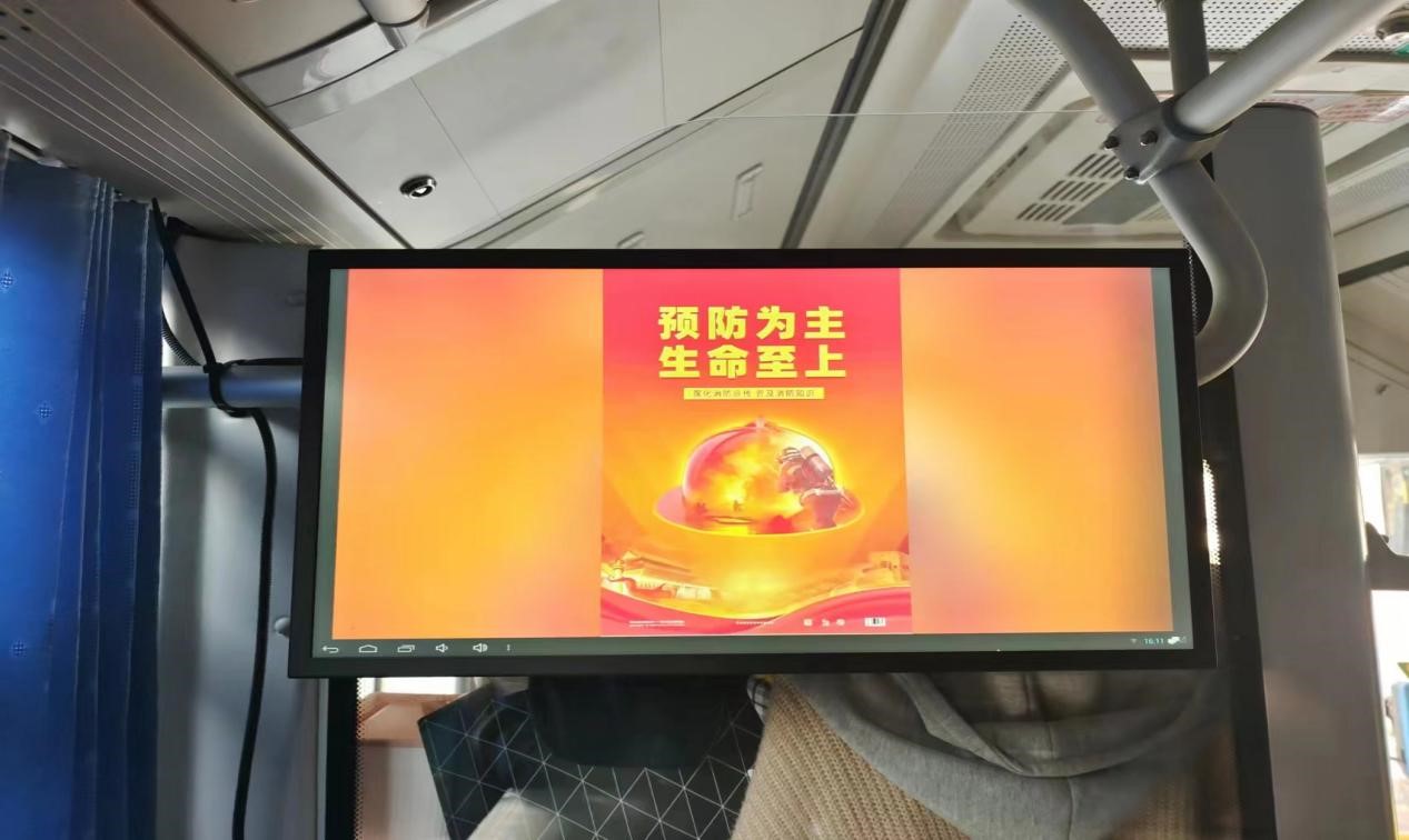 加强安全宣传,提高安全意识。消防宣传月期间,公司利用公交车载电视、智慧公交站亭播放主题为“预防为主,生命至上”的宣传视频;在南站换乘中心、西站换乘中心进站口电视显示屏每天循环播放消防公益广告约300余次;同时在各主要场站的显目位置悬挂宣传条幅。