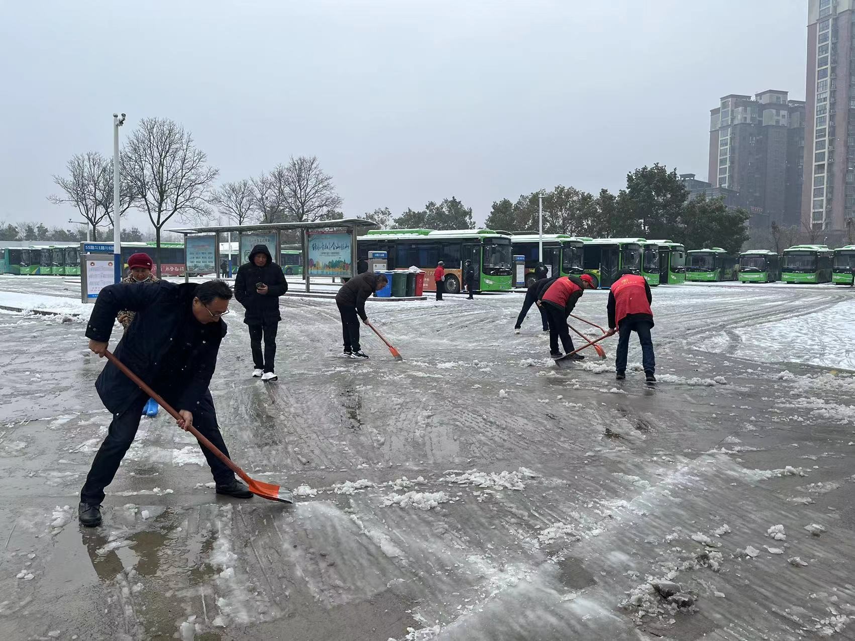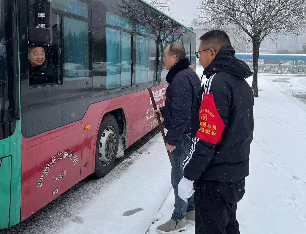 暖心服务,温馨出行。为了确保市民的顺利出行,驾驶员提前到岗自检、卫生清扫、预热车辆,行驶途中保持车距、缓慢行驶,对上下车乘客进行安全暖心提醒,保障乘客舒适、温馨出行。同时,组织各科室人员到车站及客流密集的站台服务乘客,除雪铲冰防止道路湿滑,引导乘客有序乘车、安全乘车。