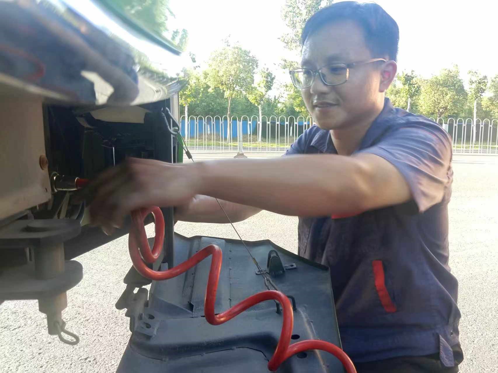 “这辆车是电控故障,大伙儿赶紧把设备拿过来,抓紧修好,别耽误运营。”在超过40度高温的马路上,方昌健和同事们马不停蹄地开始了抢修工作。“这段时间温度高,新能源车的电控系统更容易出问题,为了不影响正常运营,大家都是轮班值守,确保‘不掉链子’。只要能给市民乘客提供更安全更舒适的乘车环境,我们的每一滴汗水都有了意义。”方昌健说道。