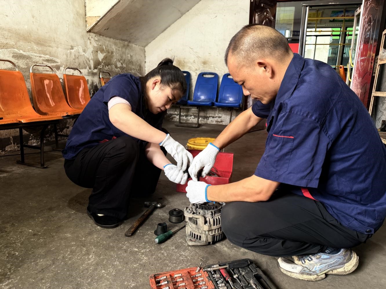 在修理厂工作的时光里,吴玉与刘荣用多年坚守书写了各自的成长篇章。吴玉于2005年1月加入修理厂,2014年光荣加入中国共产党,凭借对技术的精益求精与持续学习的韧劲,他从初出茅庐的新人维修工,一步步成长为能独当一面的机电班长;刘荣则更早扎根维修车间,2002年12月便入职成为电工,靠着认真细致的工作态度和对汽车电工知识的刻苦钻研,短时间内就成长为技术能手。工作中的两人分工明确,协作紧密:吴玉牵头负责各类营运车辆的综合维修,刘荣则专注于公交车的电工维修保养,两人一个抓“机电全局”,一个守“电路关键”,以专业能力为城市公交的安全运营筑牢了坚实屏障。